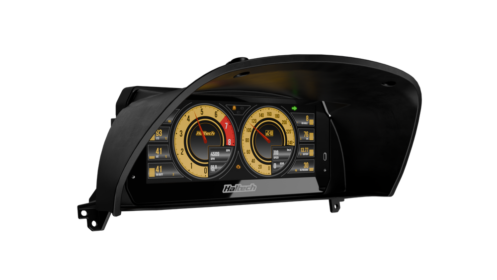 It replaces the factory cluster to provide a clean, seamless installation of the Haltech UC-10 digital dash.